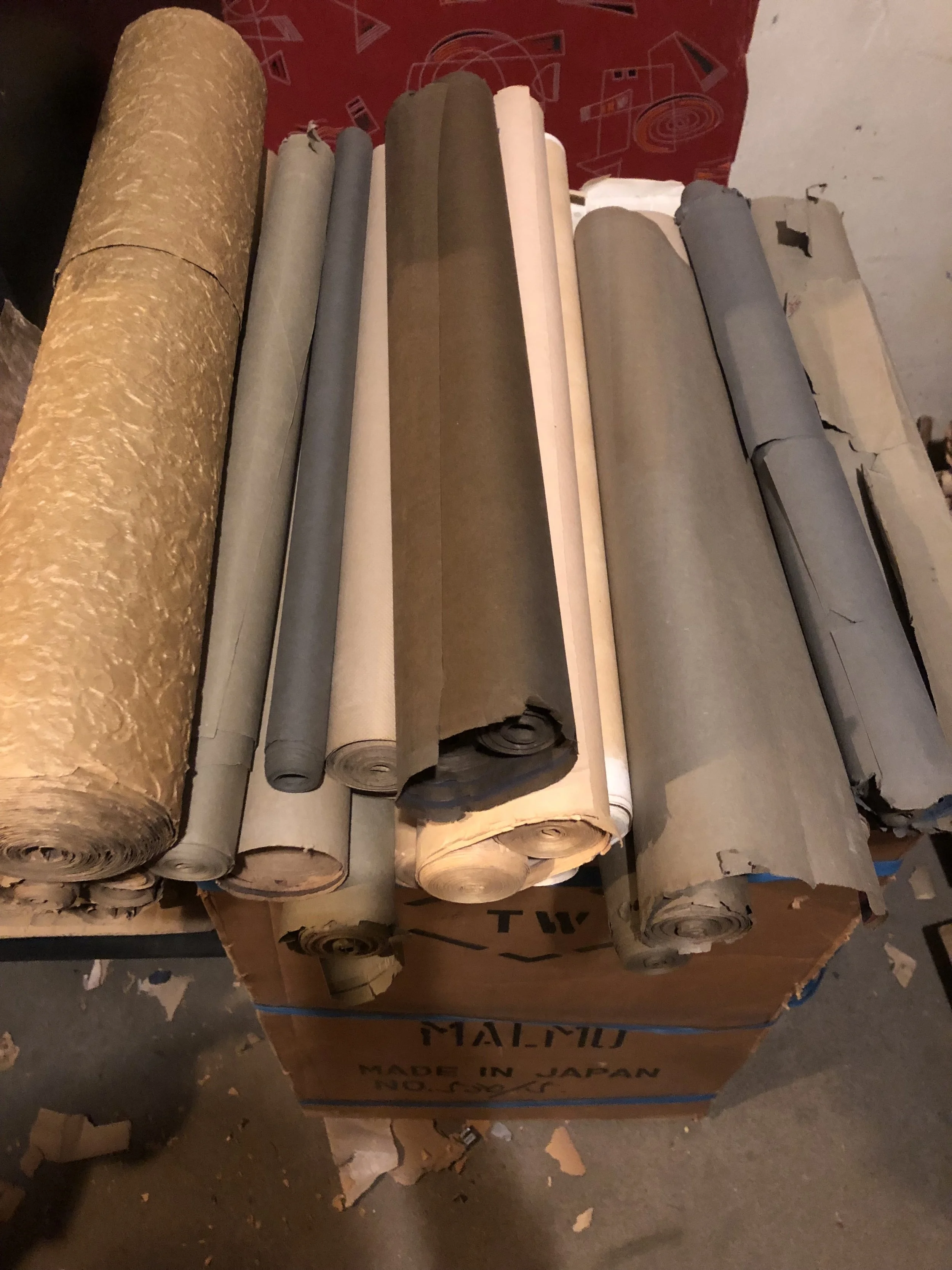 Jag började med att bära kartonger från punkt a till punkt b. I kartongerna fanns gamla tapeter från olika decennier. Då insåg jag att olika tiders tapeter hade olika tyngd…